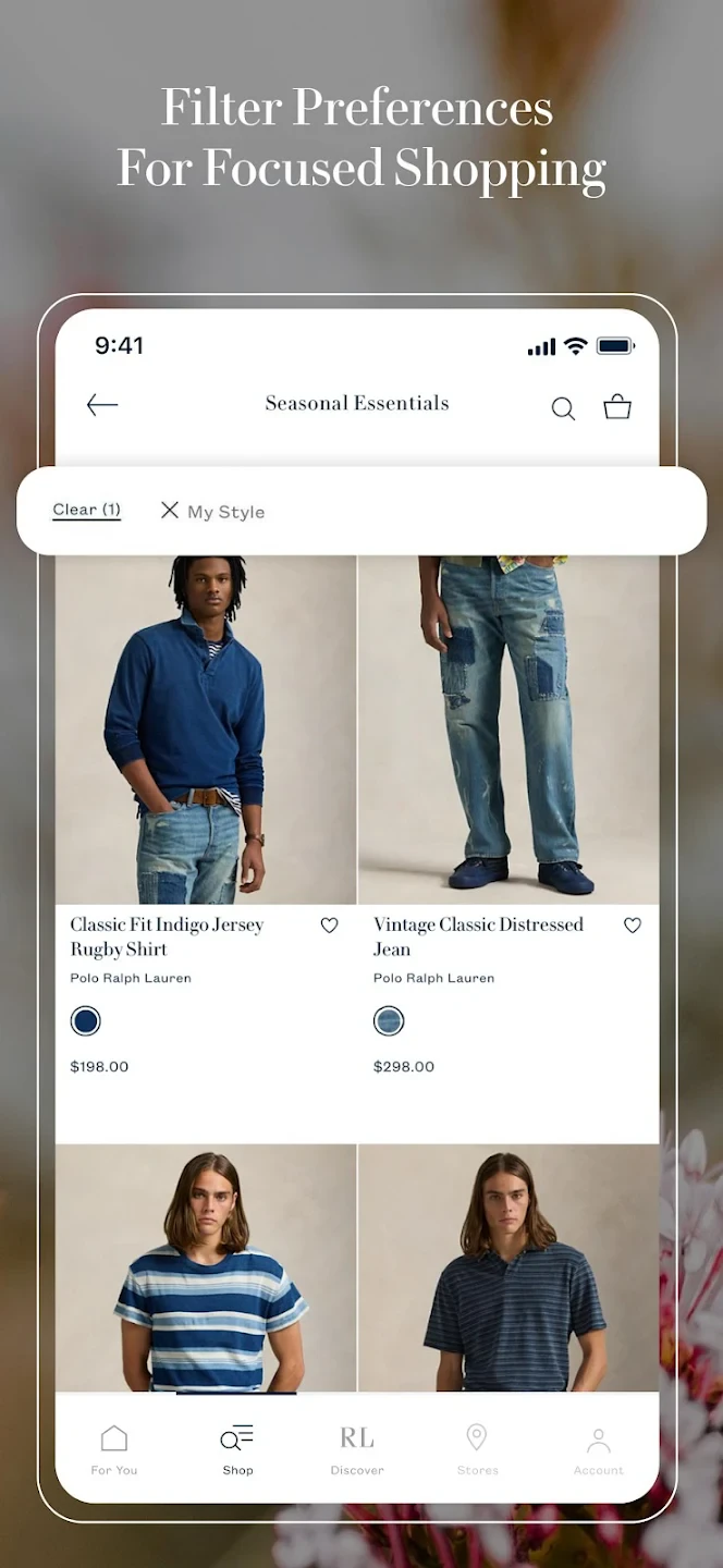 - Wishlist & Personalized Recommendations: Allows users to save items they love directly in a digital wishlist, which syncs across devices. It also suggests products based on past purchases or browsing history, offering a curated Ralph Lauren selection that helps users discover new favorites while tailoring the shopping journey.