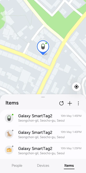 Primarily designed for tracking and managing Samsung-connected devices and items, it also incorporates location-based features for found items, offering device-specific insights and alerts. |