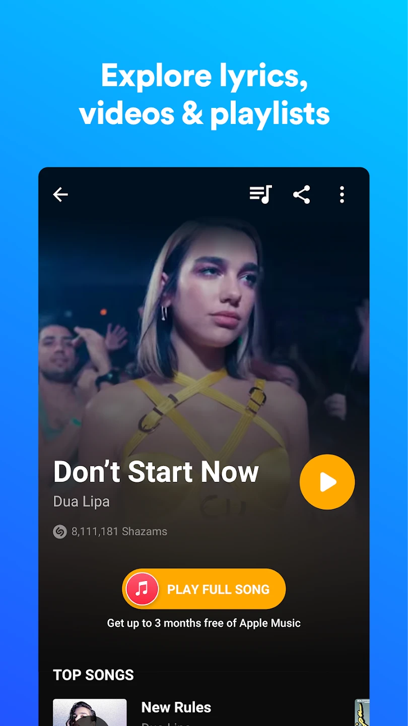 • Lyrics & Artist Information: Access extensive song lyrics, artist backgrounds, discographies, and related music videos with a single tap; this comprehensive database helps users deepen their appreciation of identified songs and discover connections to other works within their musical preferences.
