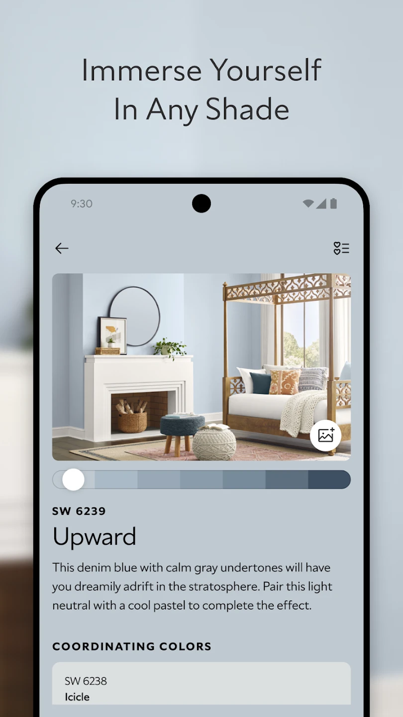 - Photo Color Matching: Simply point your phone camera at an object or surface, and the app intelligently analyzes the image to find the closest matching Sherwin-Williams paint color. This saves considerable time compared to manual selection, especially when identifying unique or hard-to-match colors found outdoors or in unique decor items.