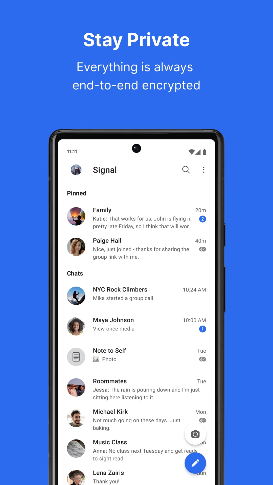 - End-to-End Encryption: Signal Private Messenger is renowned for its robust end-to-end encryption, ensuring that only the intended recipients can read messages and view shared media. This feature provides users with a high level of privacy and security.