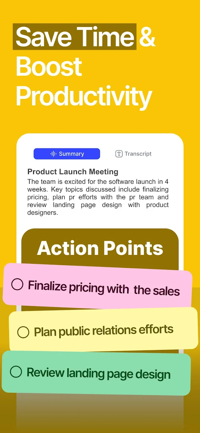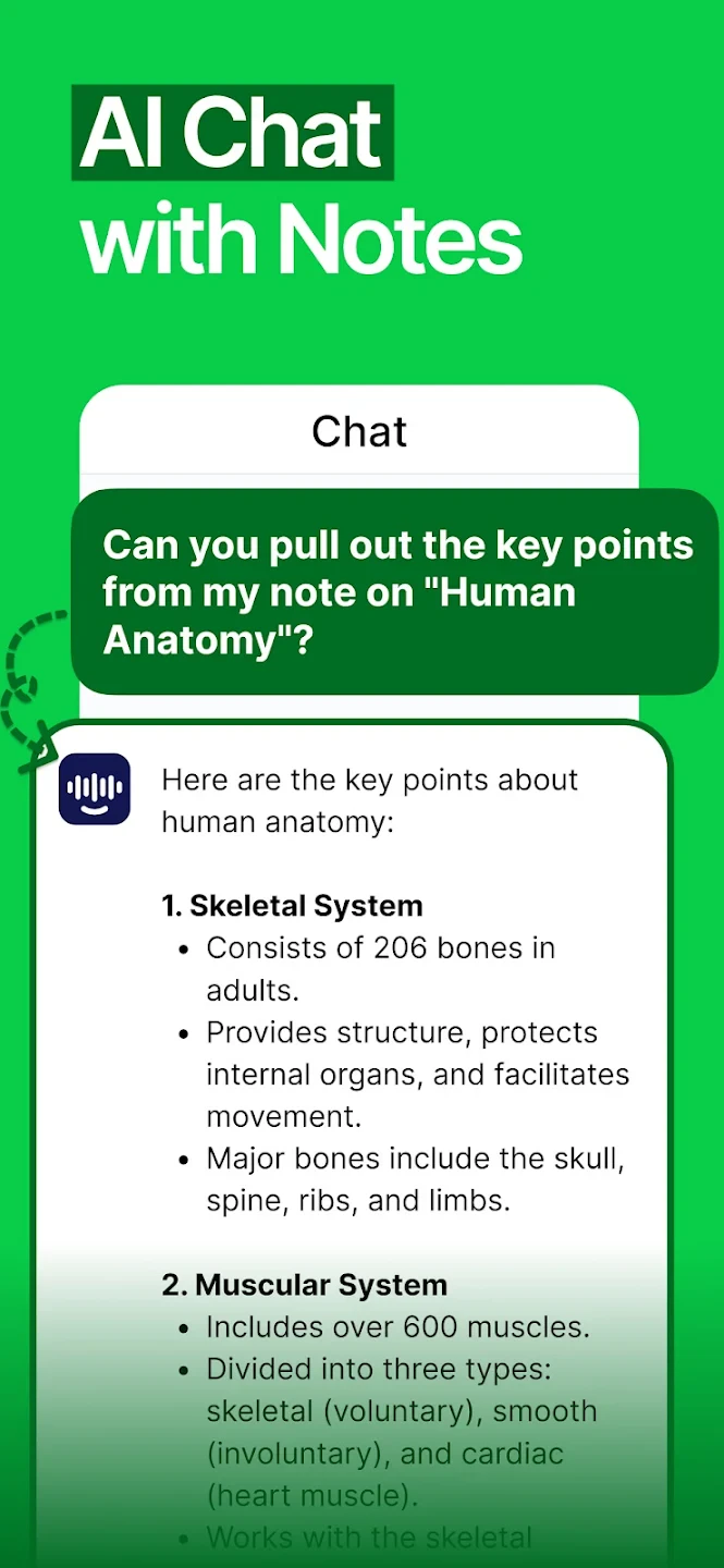 - AI Summarization & Key-Point Extraction: Automatically analyzes your notes to identify main ideas, create concise summaries, and highlight critical details like action items or dates, using natural language processing to understand context and deliver relevant content. Imagine finishing a long conference call with an automatically generated summary highlighting decisions made and tasks assigned.