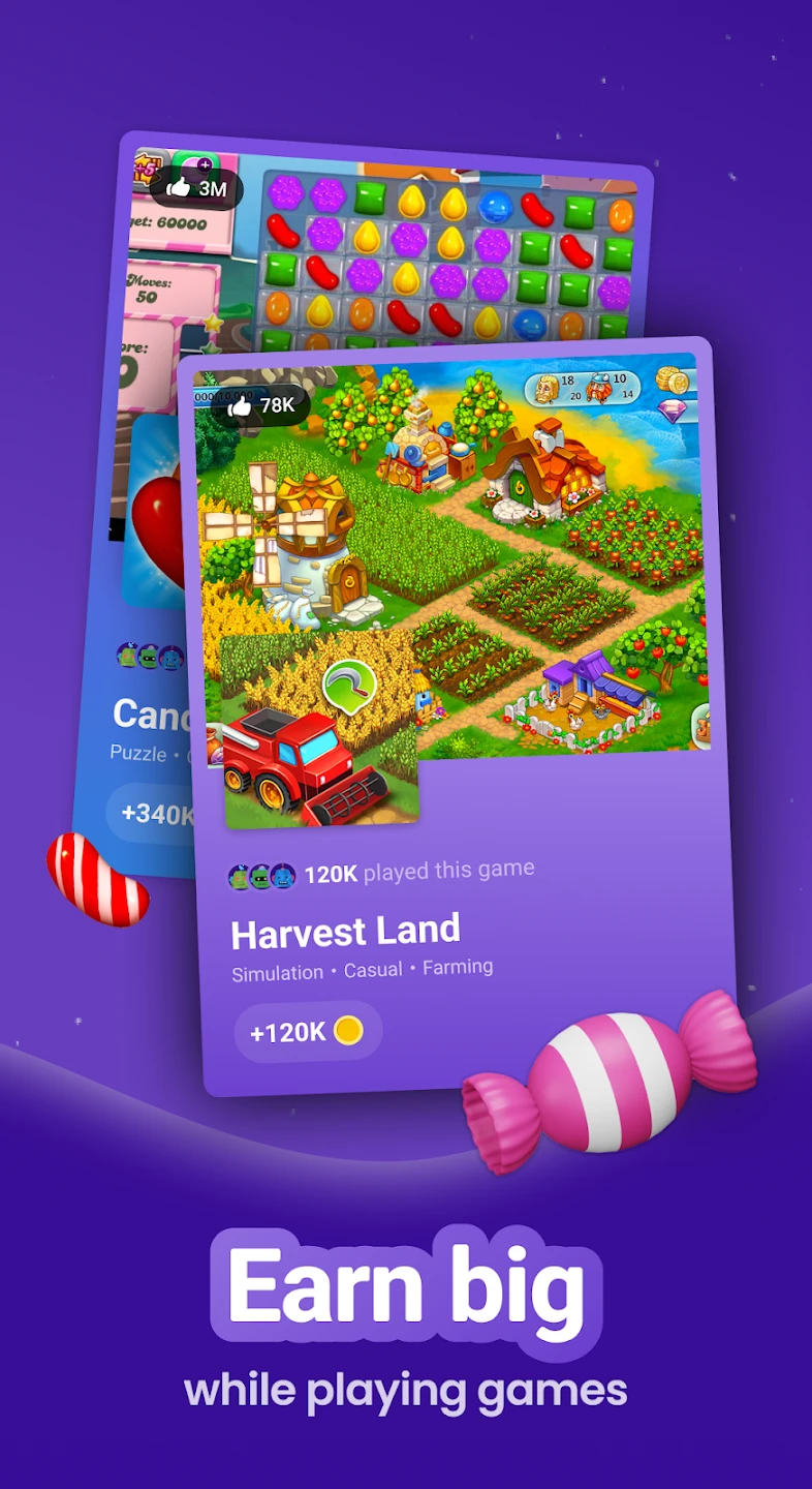 This app integrates classic games like Snake with an earning system, allowing users to accumulate currency through gameplay. Known for its progressive difficulty tiers and family-shared accounts. |