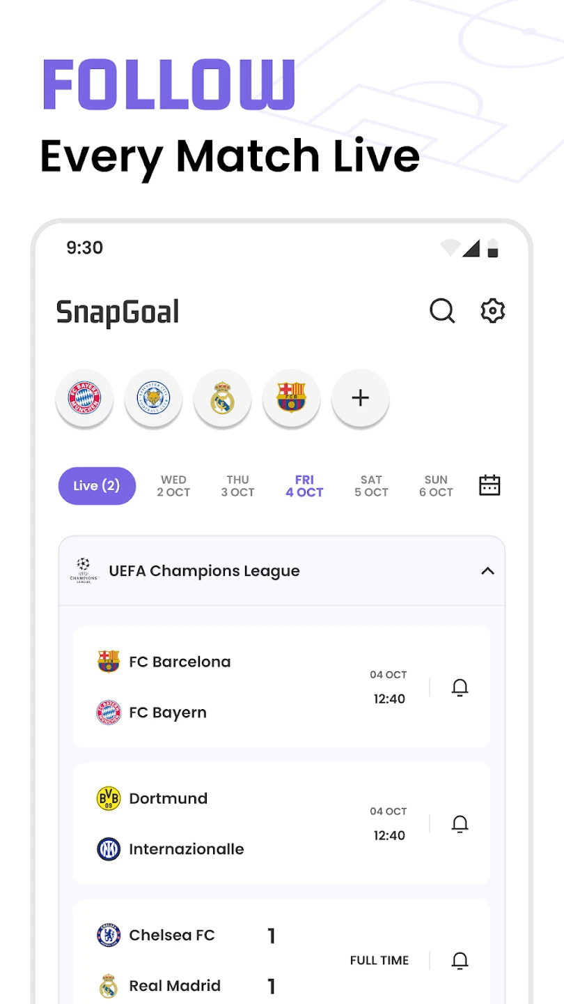 - Detailed Match Information & Status: Beyond just scores, SnapGoal displays team line-ups, possession percentages, yellow/red card alerts, and whether the game is live, paused, or has finished (including final score and time). Using standard sports data feeds, it provides a comprehensive overview, helping users understand the flow of the game and make informed predictions or assessments quickly.