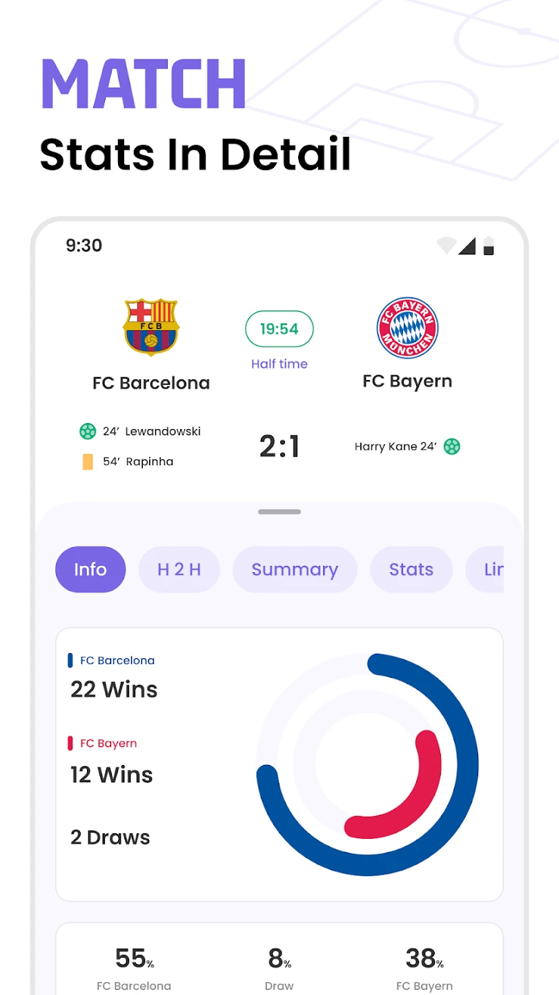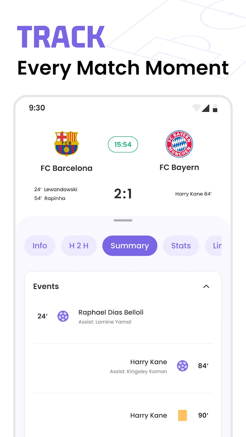 - Personalized Notifications: Users can set custom alerts for specific teams, leagues, or events like ‘goal scored’ or ‘match starting soon’. This feature saves time by pushing notifications directly to your device, ensuring you are instantly updated on matches relevant to you without having to actively check the app constantly.