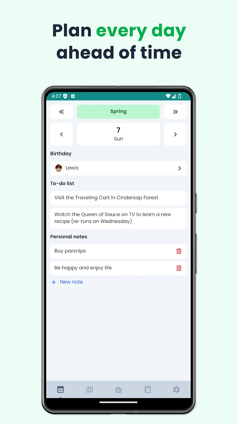 - Daily Quest & Achievement Manager: It provides a dedicated space to record completed daily tasks within the game, such as fishing at Pierre’s pier, foraging for specific herbs, or delivering honey to the local post office, along with special achievements like upgrading the farm or befriending all residents. This integration simplifies progress tracking and serves as a checklist for ambitious farming goals.