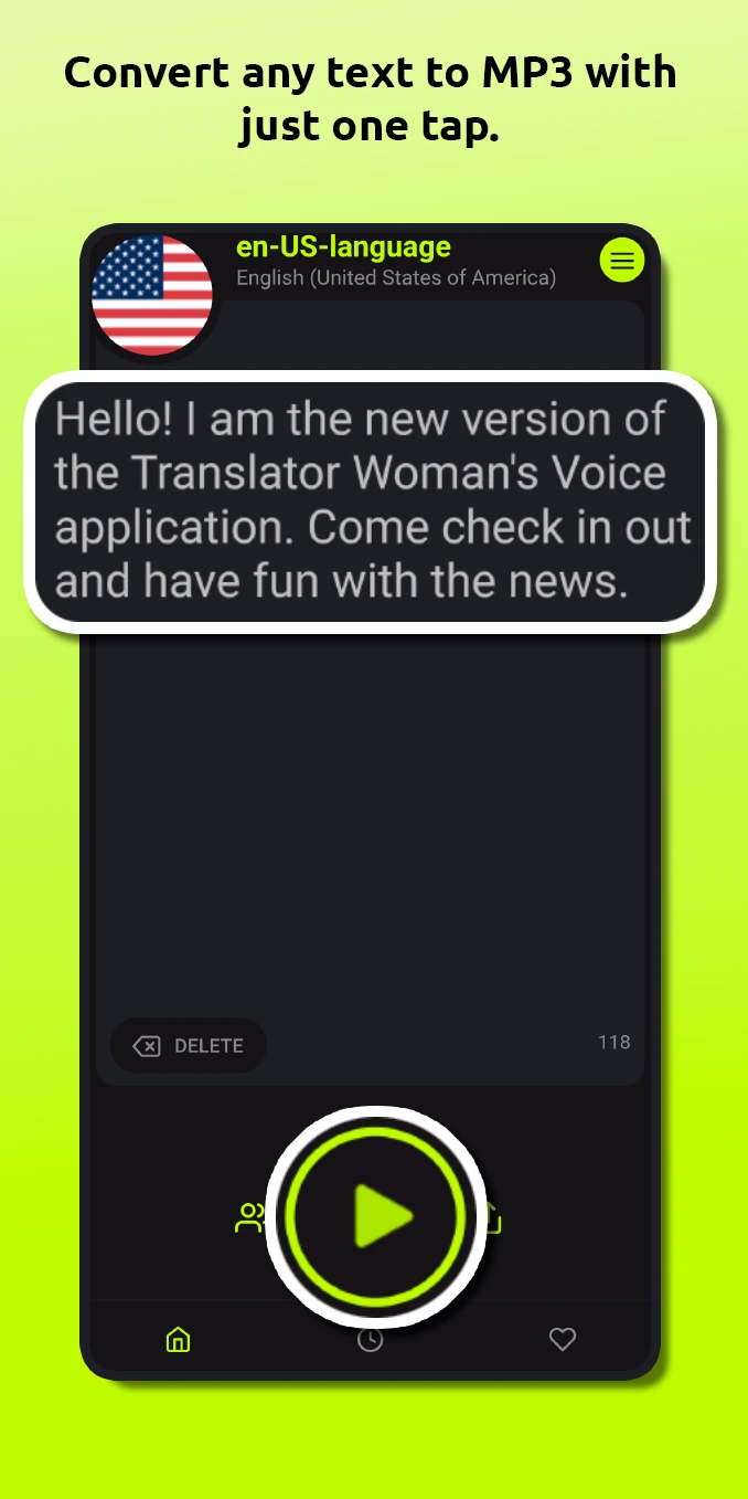 The Translator Woman’s Voice – TTS app transforms written text into natural-sounding female speech for various languages. It enables users to listen to translations instead of reading them, assisting with learning foreign languages, accessibility needs, or content creation in voice format. Perfect for travelers, language learners, and anyone needing auditory translations across over 40 languages.
