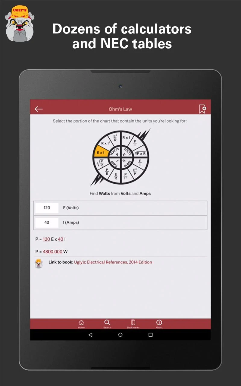 - Searchable Database: Efficiently navigate the extensive reference library by searching for specific terms, NEC articles, or calculation types; this feature drastically cuts down lookup time compared to linear browsing through books or flipping through index pages.