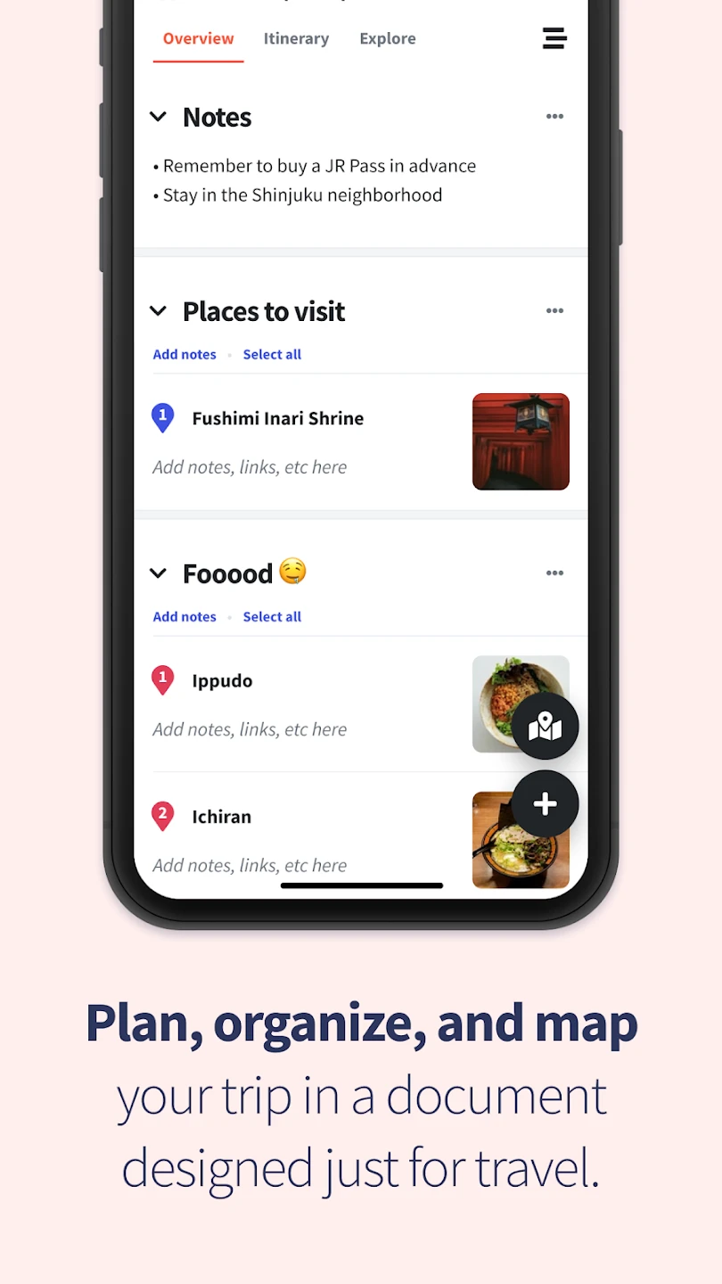 Focuses on aggregation from existing accounts (Google Calendar, Gmail) and offers basic itinerary management and offline maps. Good for syncing with other Google services. |