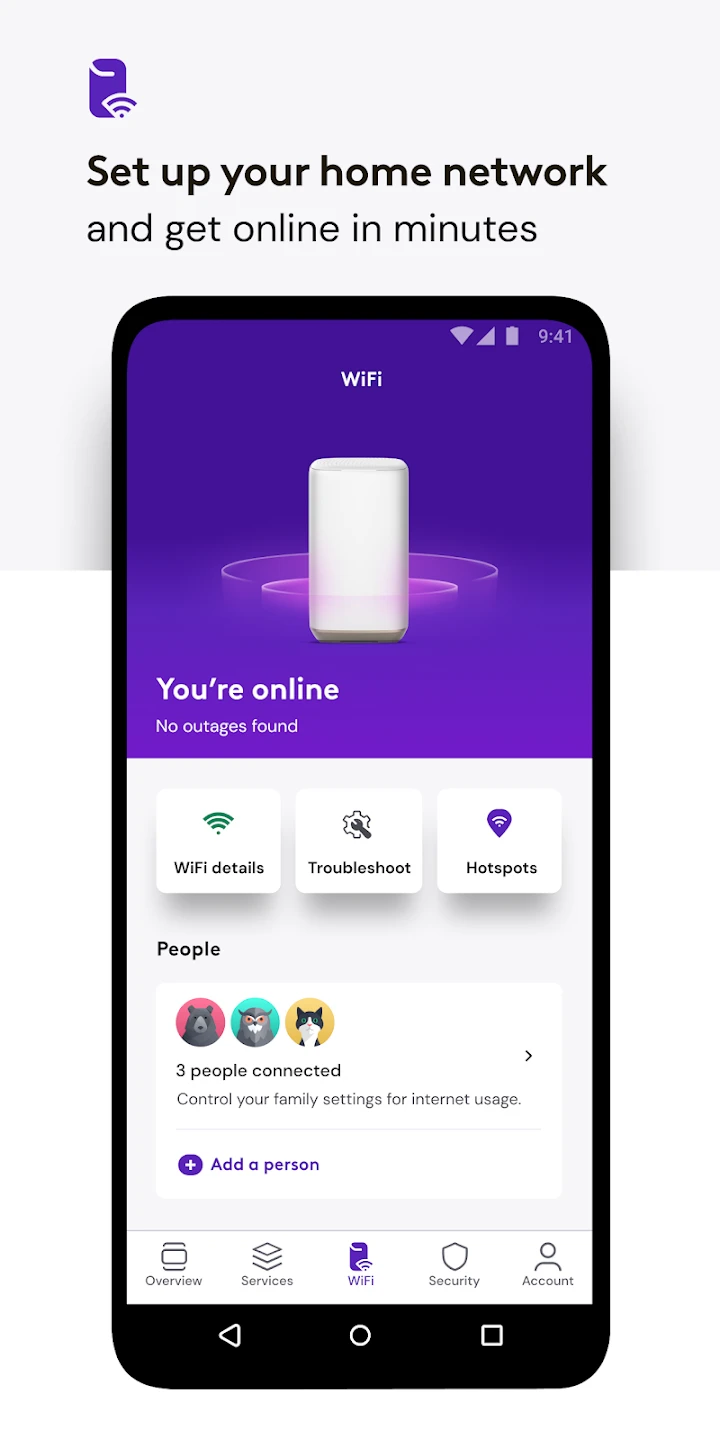 • Service Management Dashboard: This central hub gives a live overview of active subscriptions, data usage, and service status at a glance. Users can toggle services on/off, check outages in real-time, and access personalized support options directly from the main screen for immediate resolution.